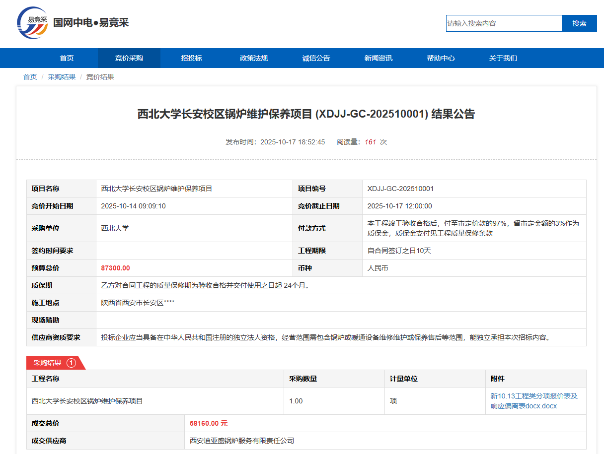 金沙2004路线js5长安校区锅炉维护保养项目(XDJJ-GC-202510001)竞价结果公告