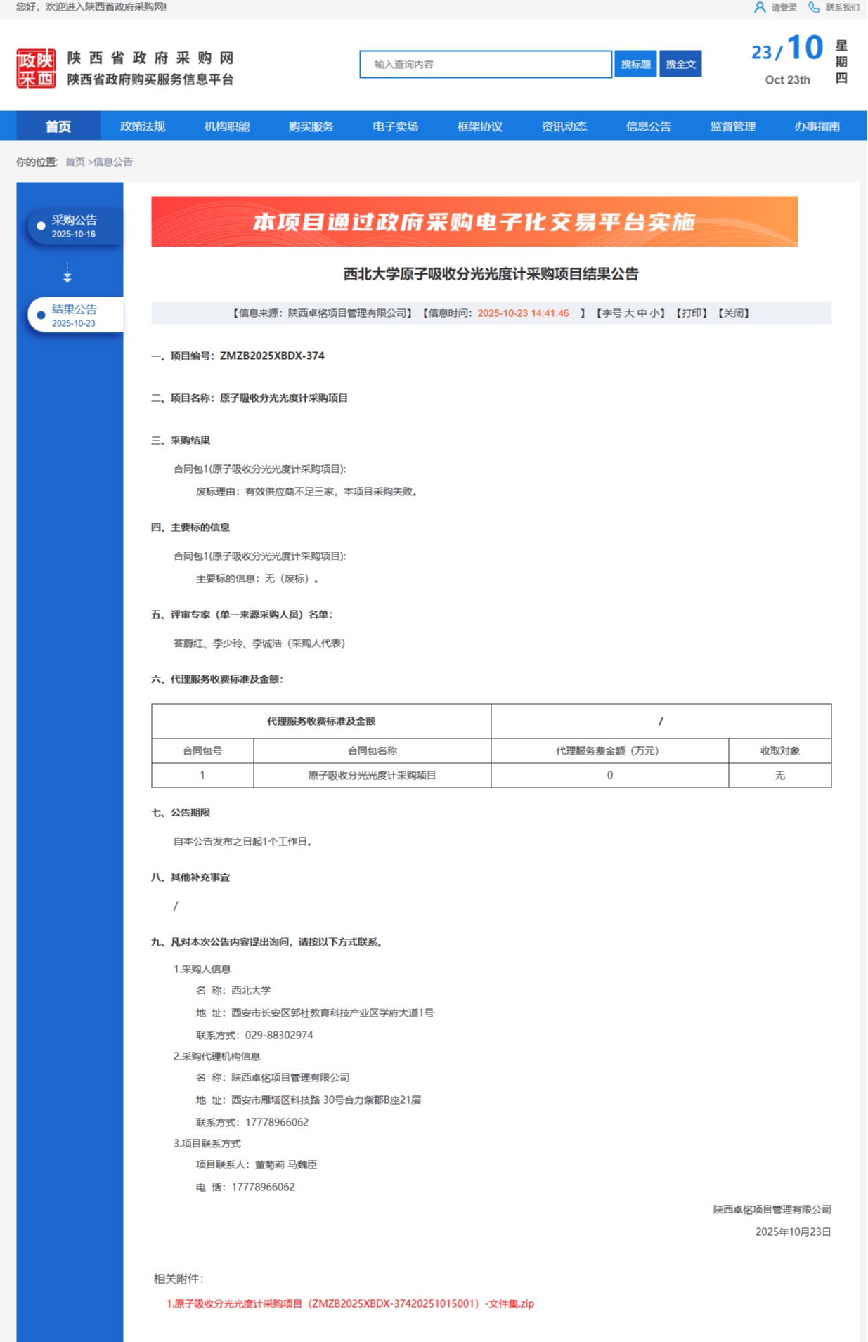 金沙2004路线js5原子吸收分光光度计采购项目结果公告