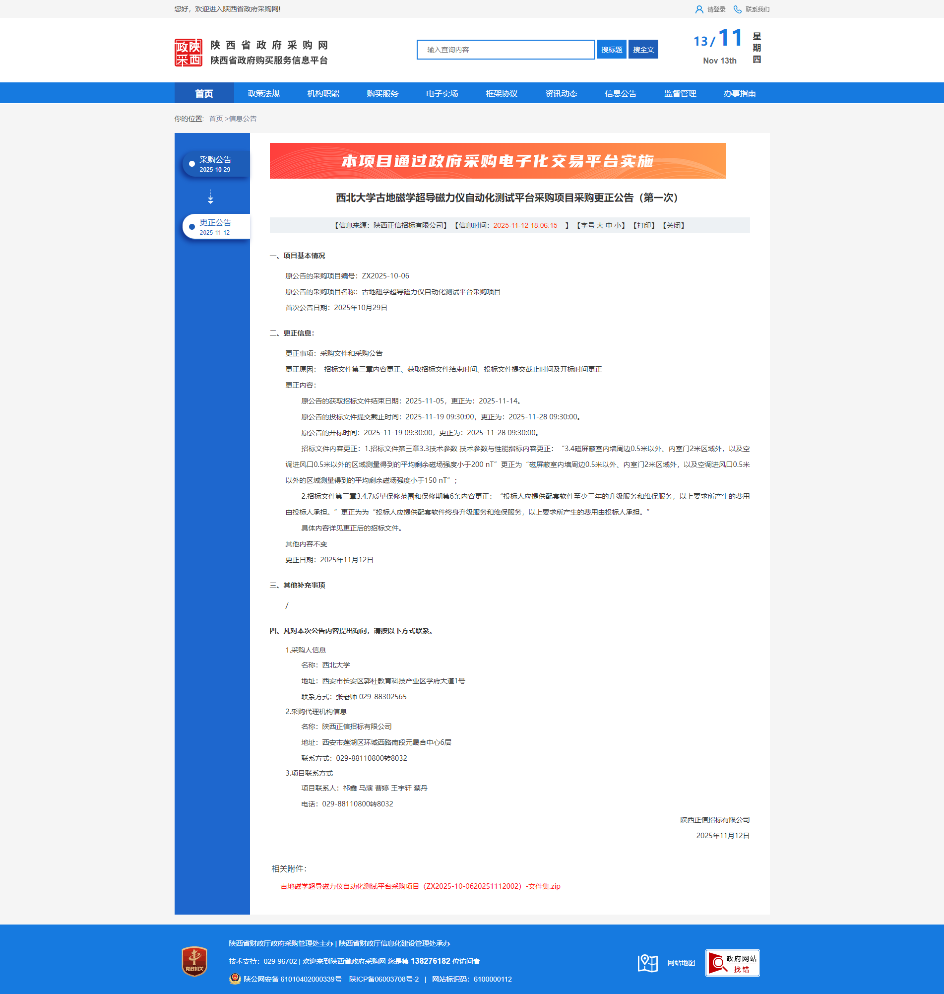 金沙2004路线js5古地磁学超导磁力仪自动化测试平台采购项目采购更正公告(第一次)