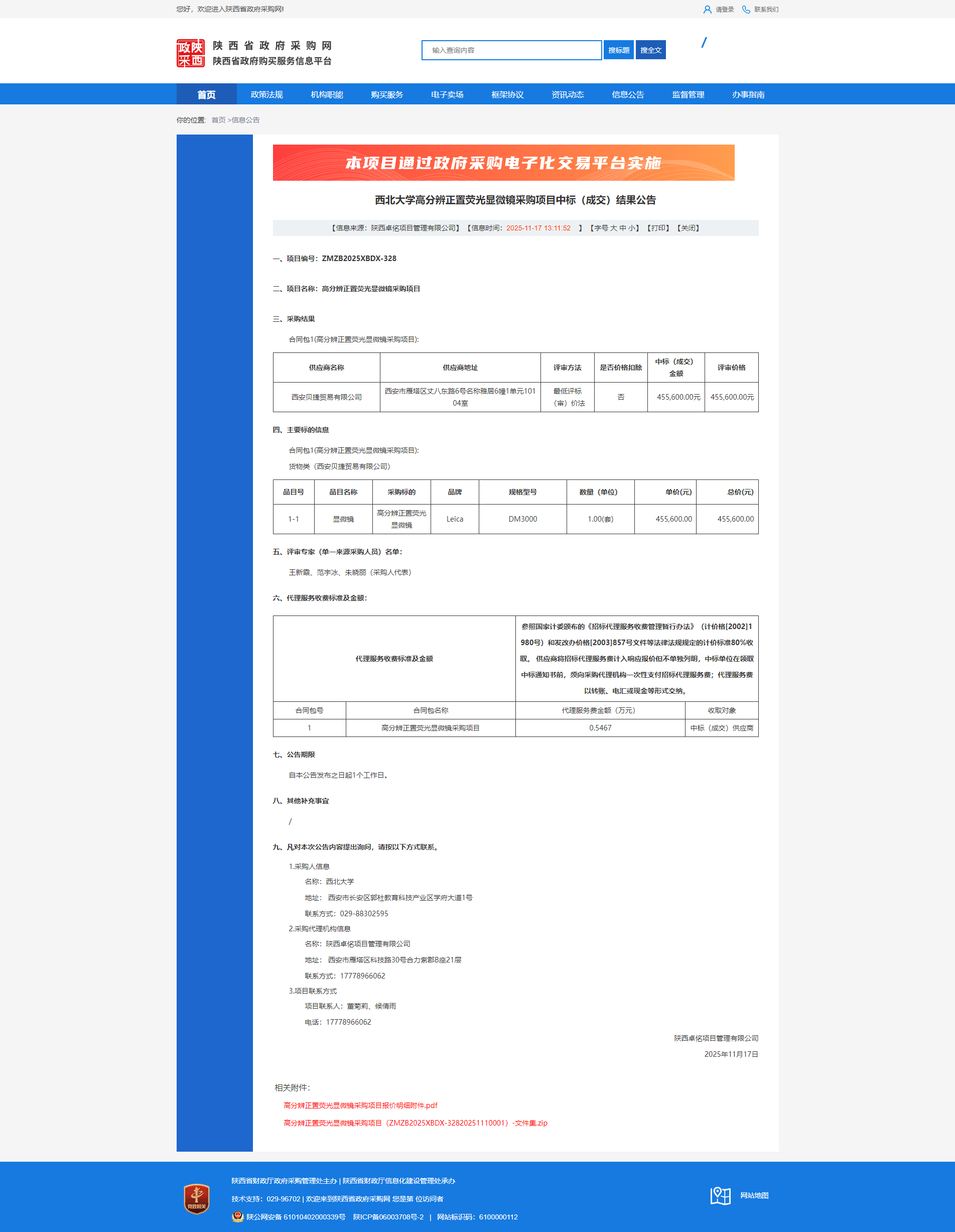 金沙2004路线js5高分辨正置荧光显微镜采购项目中标(成交)结果公告