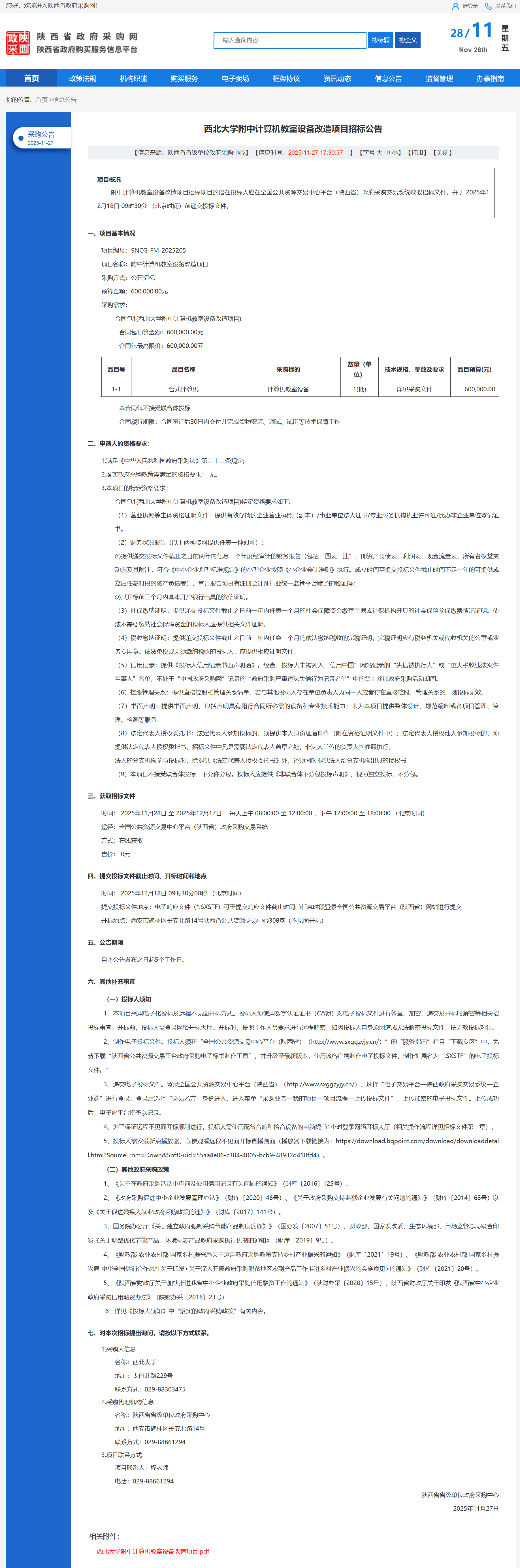 金沙2004路线js5附中计算机教室设备改造项目招标公告