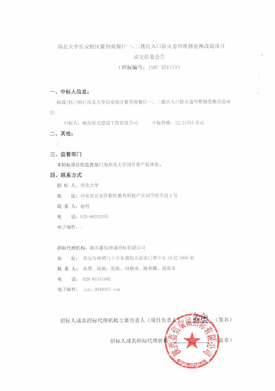 金沙2004路线js5长安校区紫荆苑餐厅一、二楼出入口防火卷帘维修更换改造项目成交结果公告